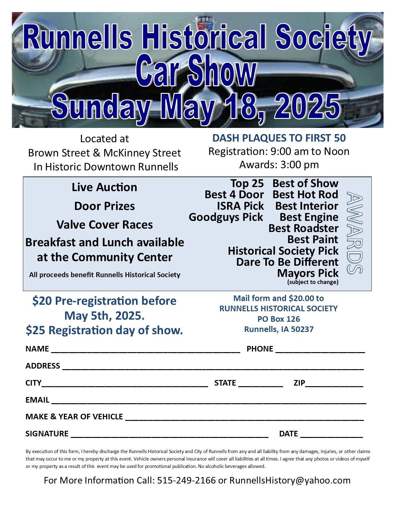 Mailing Address: PO Box 126 Runnells, Iowa 50237 Phone: 515-554-1553 Email: Runnellshistory@yahoo.com